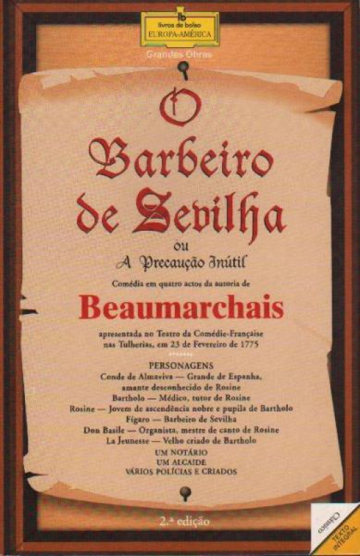 Beaumarchais, de seu verdadeiro nome Pierre-Augustin Caron, nasceu em Paris a 24 de Janeiro de 1732. Começou por exercer o ofício de relojoeiro, mas em breve o seu temperamento irrequieto o lançou no turbilhão do mundo.