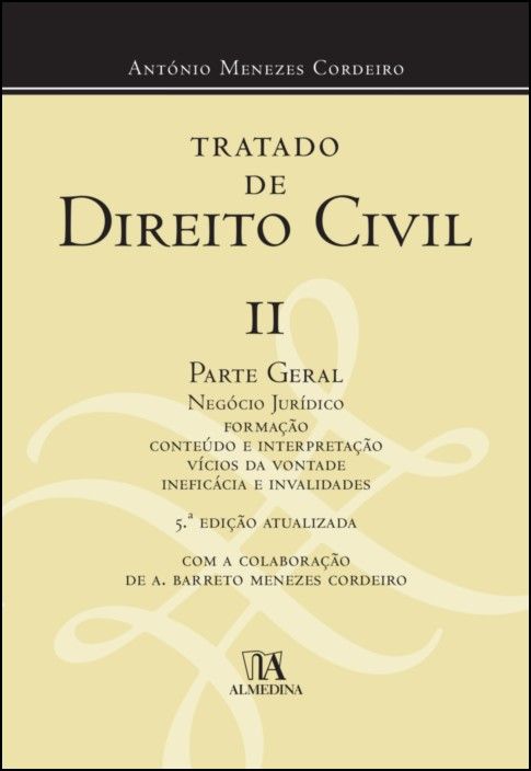 A presente 5.ª edição do II volume do Tratado de Direito Civil, que funciona como obra autónoma, disponibiliza, aos estudiosos e aos práticos do Direito, um panorama extenso e atualizado da Ciência Jurídico Civil, no cerne do ordenamento. Com elementos históricos, comparatísticos e europeus, ela dá conta, com apoio em mais de mil decisões judiciais, do estado atual do Direito civil do nosso século, na área incontornável do negócio jurídico.